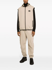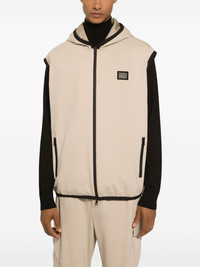 logo-plaque hooded gilet Highlights - Sand beige - Cotton blend - Jersey texture - Contrasting trim - Classic hood - Front two-way zip fastening - Two zip-fastening pockets - Sleeveless - Straight hem Imported Composition Cotton 52%, Polyamide 40%, Elastane 8% Washing instructions Read Manufacturer Guidelines