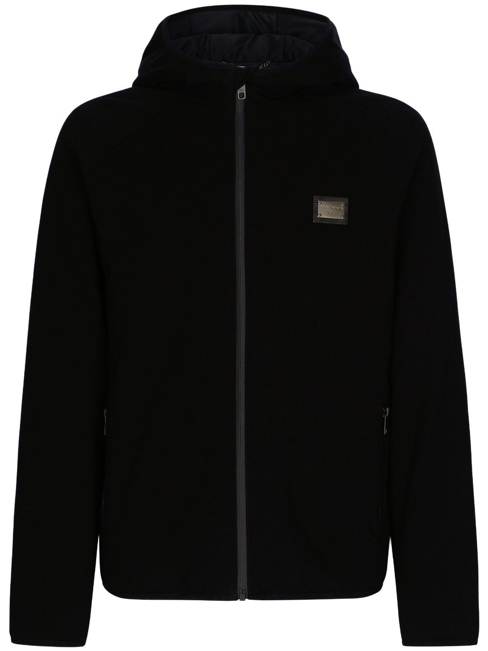 logo-plaque hooded jacket A recognisable symbol of Dolce & Gabbana that's featured throughout the AW23 collection, the silver-tone branded plaque completes the design of this hooded jacket for an authentic finish. Highlights - Black - Logo plaque - Classic hood - Front zip fastening - Long sleeves - Straight hem Made in Italy Composition Polyester 100%
