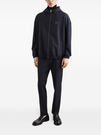 logo-plaque hooded jacket Highlights - Midnight blue - Front zip fastening - Elasticated cuffs - Two front jetted pockets - Elasticated hem Made in Italy Composition Lining: Viscose 95%, Spandex/Elastane 5% Outer: Wool 55%, Polyester 41%, Spandex/Elastane 4%