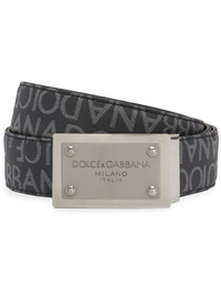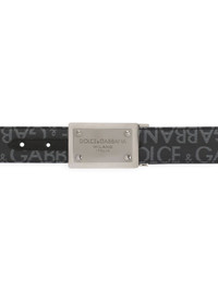 logo-plaque jacquard belt Highlights - Black/multicolour - Canvas/calf leather - Jacquard - All-over logo print - Silver-tone logo plaque - Punched holes - Logo buckle fastening - Adjustable fit Made in Italy Composition Cotton 45%, Polyurethane 30%, Polyester 15%, Calf Leather 10% SIZE & FIT Measurement WIDTH 1.37 in(3.5 cm)
