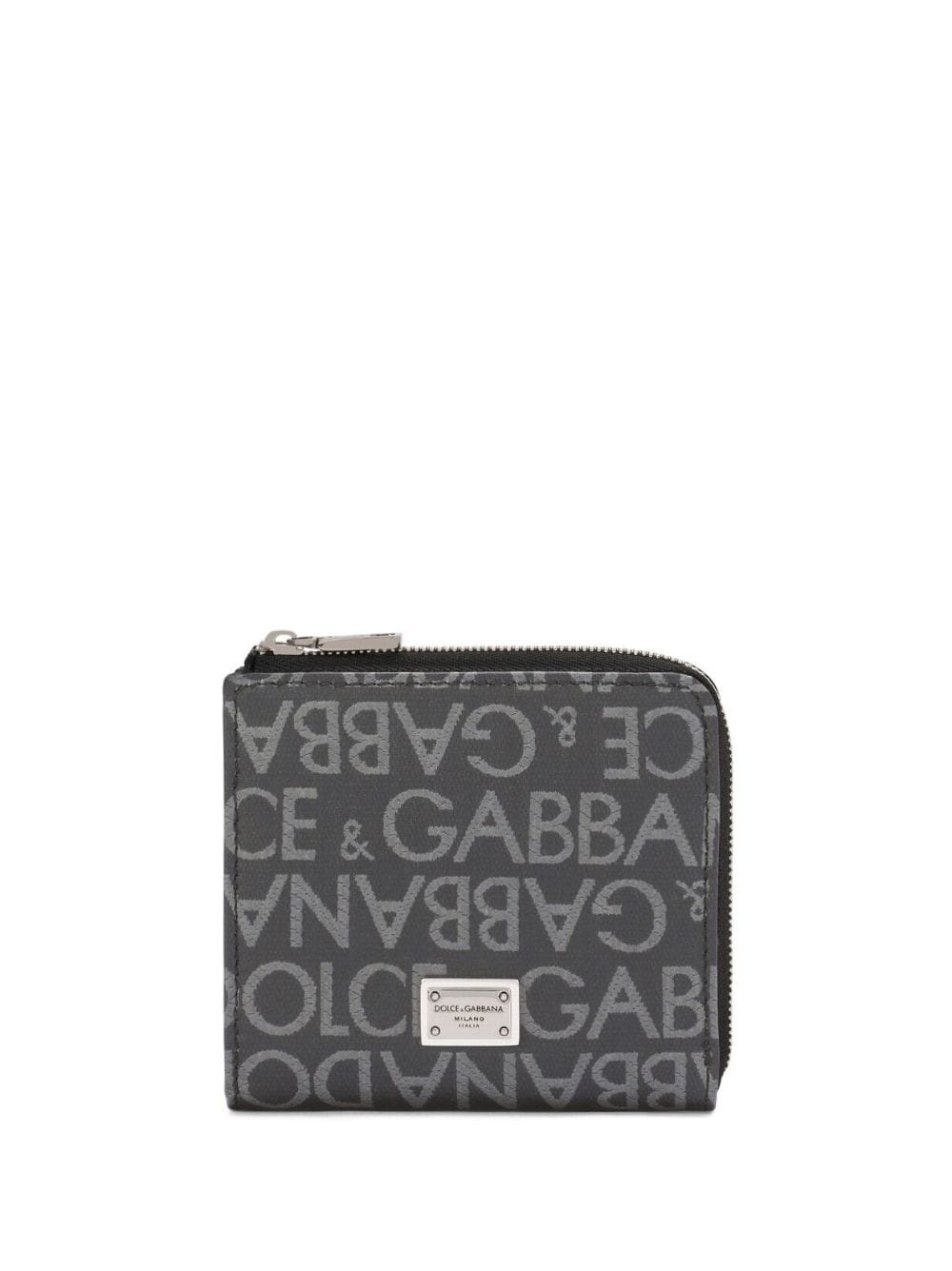 logo-plaque jacquard wallet Highlights - Charcoal grey - Calf leather - Silver-tone logo plaque - Jacquard logo motif - All-around zip fastening - Internal card slots - Note compartment Made in Italy Composition Calf Leather 80%, Cotton 47%, Polyurethane 39%, Rayon 20%, Polyester 14% SIZE & FIT Measurement DEPTH 0.39 in(1 cm) LENGTH 3.93 in(10 cm) WIDTH 4.33 in(11 cm)