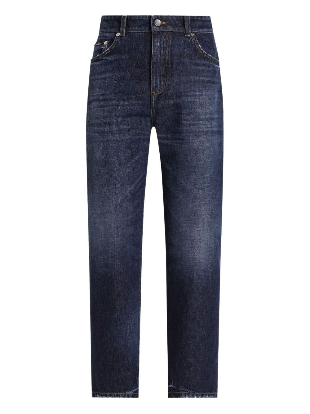 logo-plaque jeans Highlights - Dark blue - Five pockets - Belt loops - Button fly Made in Italy Composition Cotton 100% Washing instructions Read Manufacturer Guidelines