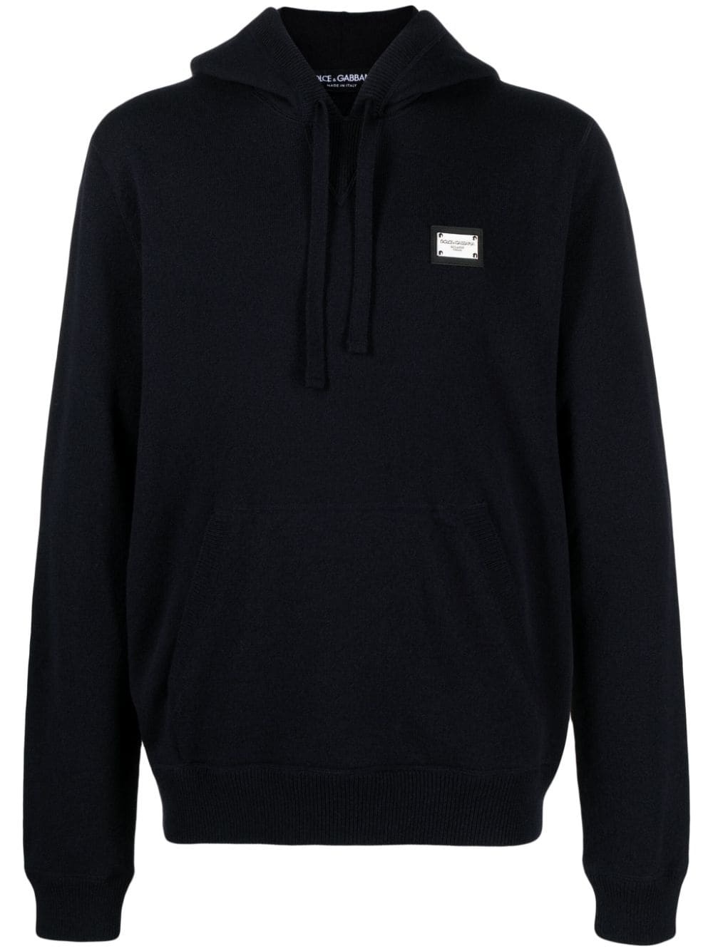 logo-plaque knitted hoodie Highlights - Black - Virgin wool-cashmere blend - Silver-tone logo plaque - Long sleeves - Drawstring hood - Ribbed cuffs and hem - Front pouch pocket - Straight hem Made in Italy Composition Virgin Wool 90%, Cashmere 10% SIZE & FIT Model measurements Height 6 ft 2 in(1.87 m) Bust/Chest 36.41 in(92.5 cm) Hips 37 in(94 cm) Waist 29.52 in(75 cm) FittingInformation Designed for a relaxed fit, this piece allows for comfort and movement when worn Made from a midweight non-stretch fabric, this piece offers minimal elasticity when worn This piece fits true to size – take your usual size Measurement CHEST 44.09 in(112 cm) LENGTH 27.95 in(71 cm) SLEEVE LENGTH 27.55 in(70 cm) Washing instructions Dry Clean Only