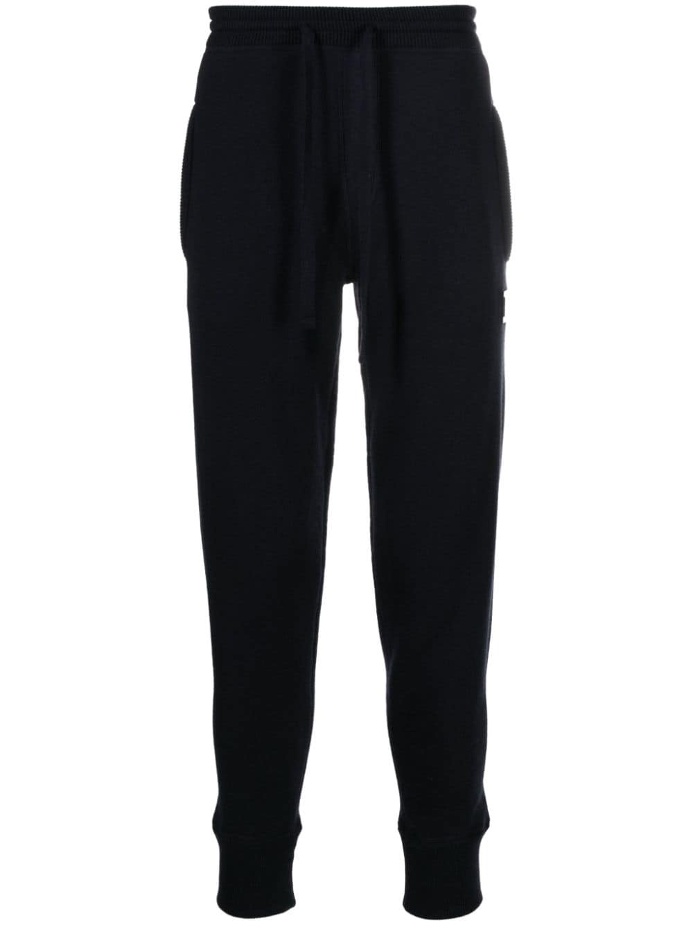 logo-plaque knitted track pants Highlights - Navy blue - Virgin wool-cashmere blend - Knitted construction - Silver-tone logo plaque - Slim cut - Elasticated drawstring waistband - Two side inset pockets - Rear zip-fastening pocket - Ribbed ankles Made in Italy Composition Virgin Wool 90%, Cashmere 10% SIZE & FIT Model measurements Height 6 ft 2 in(1.87 m) Bust/Chest 36.41 in(92.5 cm) Hips 35.43 in(90 cm) Waist 29.52 in(75 cm) FittingInformation Designed for a relaxed tapered leg, allowing a comfortable loose fit above the knee with a closer fit towards the calves The ribbed hem at the ankle offers a close, comfortable fit Made from a midweight non-stretch fabric, this piece offers minimal elasticity when worn This piece fits true to size – take your usual size Washing instructions Dry Clean Only