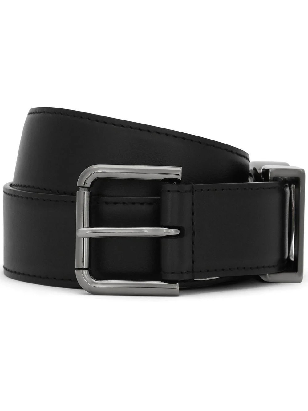 DG-logo leather belt Highlights - Jet black/silver-tone - Calf leather - Silver-tone logo lettering - Buckle fastening - Punched holes Made in Italy Composition Calf Leather 100%
