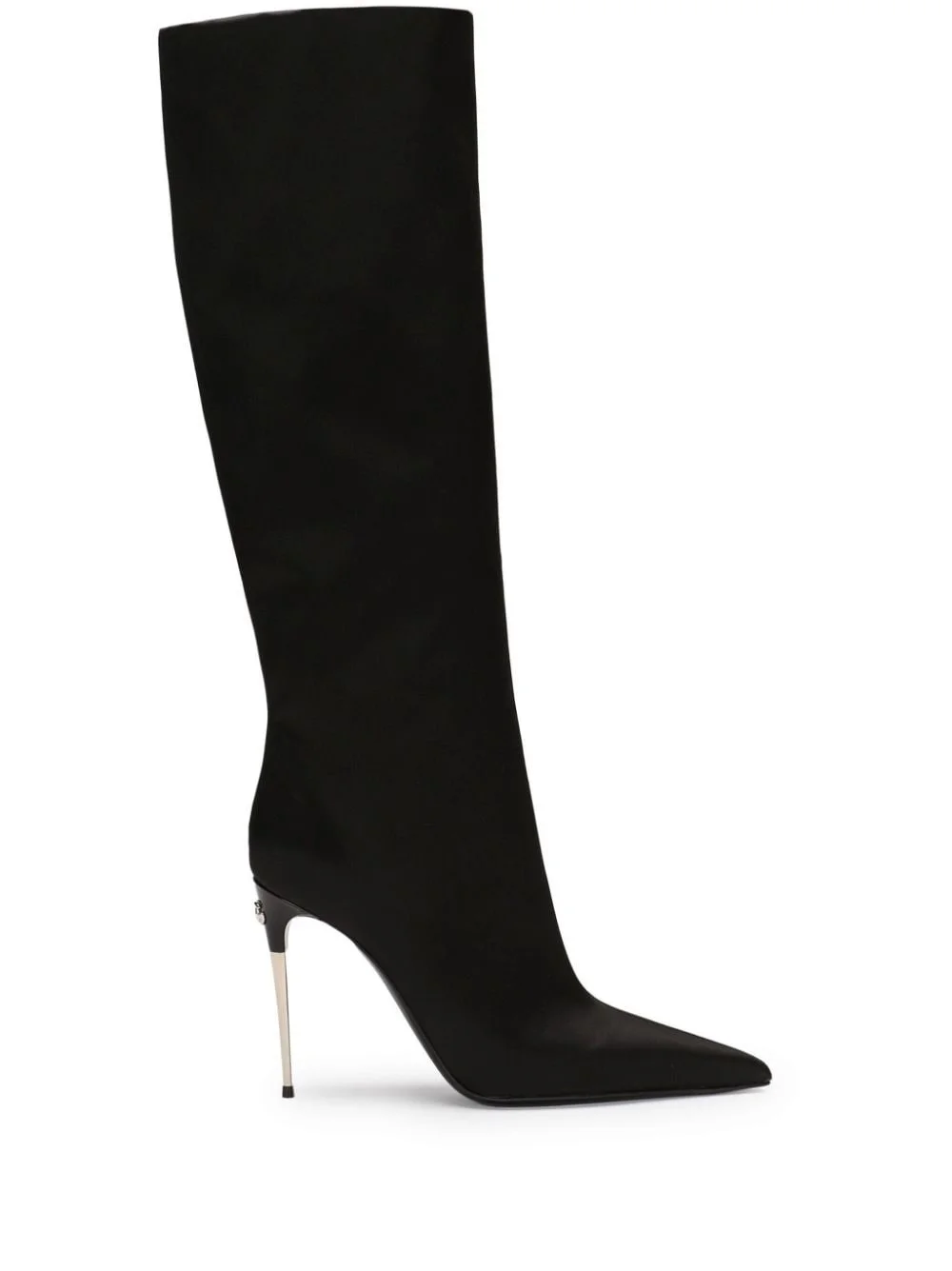 logo-plaque leather boots Highlights - Black - Calf leather - Below-knee length - Side zip fastening - Silver-tone logo plaque - High stiletto heel - Pointed toe Made in Italy Composition Outer: Eel Skin 100%, Wool 50%, Virgin Wool 25% Lining: Polyamide 50%, Goat Skin 30%, Spandex/Elastane 20% Sole: Calf Leather 100%