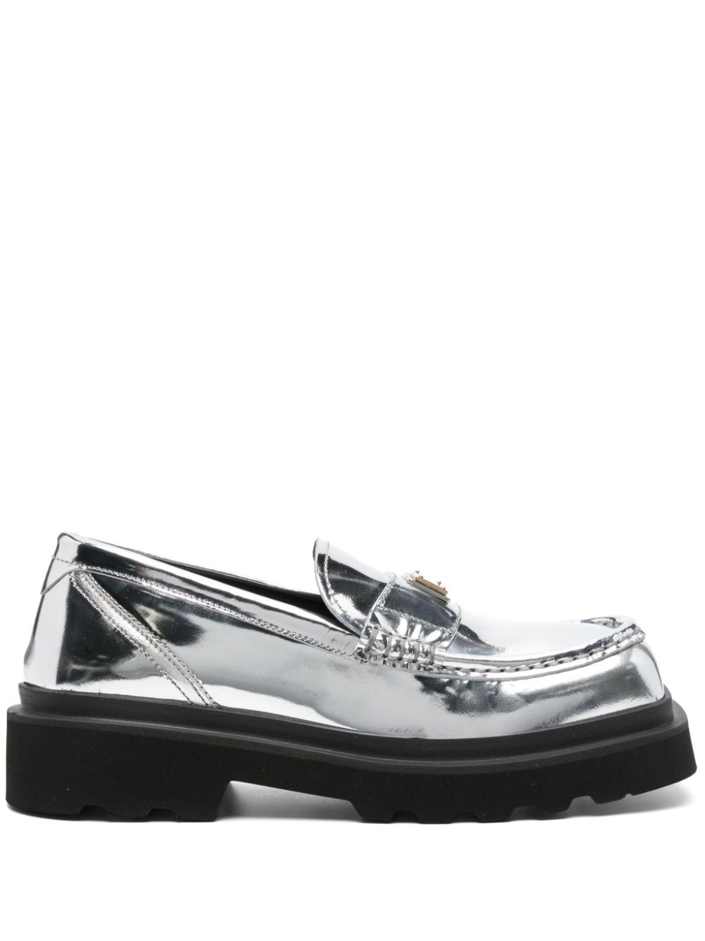 logo-plaque leather brogues Highlights - Silver-tone - Calf leather - Metallic finish - Gold-tone logo plaque - Square toe - Branded insole - Chunky rubber sole Made in Italy Composition Leather 100% SIZE & FIT Measurement HEEL 1.77 in(4.5 cm) Sole height 1.18 in(3 cm)