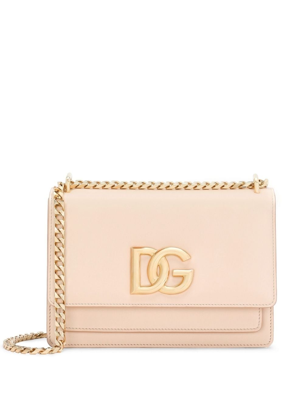logo-plaque leather crossbody bag Highlights - Light pink - Calf leather - Gold-tone hardware - Gold-tone logo plaque - Cable-link chain - Foldover top with magnetic fastening - Partitioned compartment - Internal slip pocket Made in Italy Composition Lining: Calf Leather 100% Outer: Calf Leather 100%