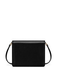 logo-plaque leather crossbody bag Highlights - Black - Calf leather - Gold-tone hardware - Gold-tone logo plaque - Adjustable shoulder strap - Foldover top with magnetic fastening - Partitioned compartment Made in Italy Composition Outer: Calf Leather 100% Lining: Calf Leather 95%, Viscose 5%