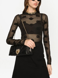 Devotion quilted shoulder bag Highlights - Jet black - Nappa leather - Quilted - Signature sacred heart plaque - Gold-tone hardware - Leather and chain-link shoulder strap - Foldover top - Push-lock fastening - Main compartment - Internal zip-fastening pocket - Internal logo stamp - Nappa leather lining - This piece comes complete with a protective dust bag. Made in Italy Composition Outer: Lambskin 100% Lining: Lambskin 97%, Rayon 3% SIZE & FIT Measurement DEPTH 1.96 in(5 cm) HEIGHT 3.93 in(10 cm) STRAP 15.74 in(40 cm) WIDTH 10.62 in(27 cm)