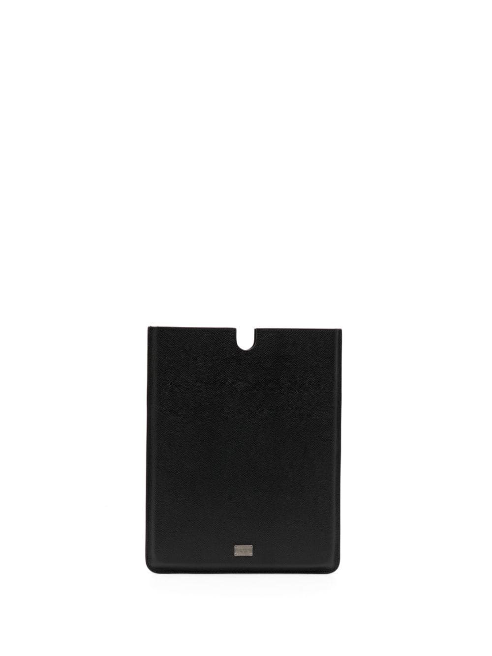 logo-plaque leather tablet case Made from grained Italian leather, this tablet case by Dolce & Gabbana embraces a minimalist design. Featuring a slim silhouette with an open top, it is rendered in a classic black hue and accented with a small silver-tone logo at the front. Highlights - Black - Leather - Grained texture - Open top - Silver-tone logo plaque - Rectangle shape - Slip-on style Made in Italy Composition Leather 100% SIZE & FIT Measurement DEPTH 0.39 in(1 cm) HEIGHT 7.87 in(20 cm) WIDTH 5.9 in(15 cm)