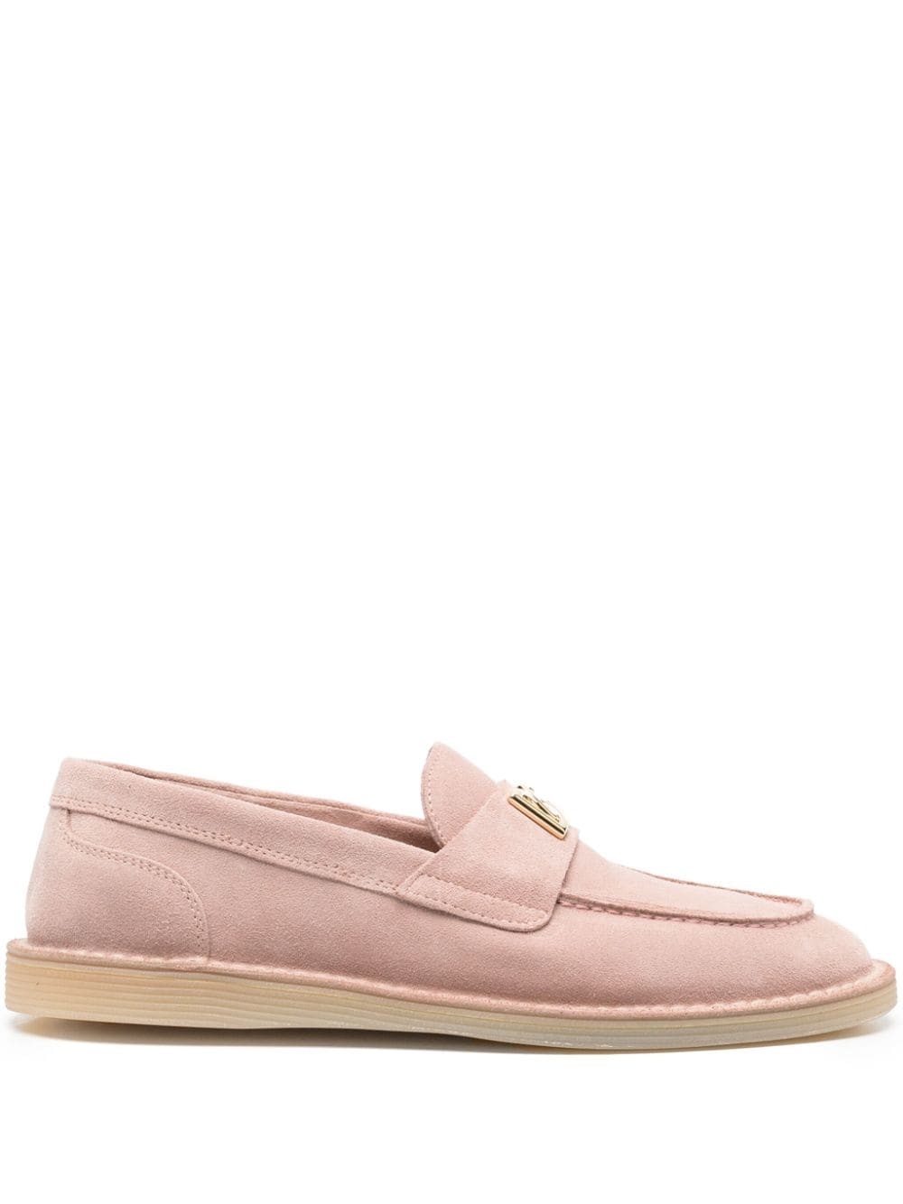 logo-plaque loafers Highlights - Blush pink - Calf suede - Slip-on style - Whipstitch detailing - Logo plaque - Almond toe - Branded leather insole - Rubber sole Made in Italy Composition Suede 100% SIZE & FIT Measurement HEEL 0.78 in(2 cm) Sole height 0.39 in(1 cm)