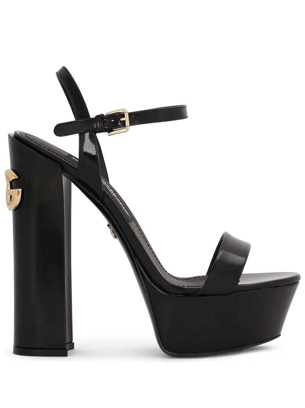 145mm Keira platform sandals Crafted from patent leather with a high-shine finish, these black pumps from Dolce & Gabbana are set atop a platform sole and a high block heel. The pair is finished with a gold-tone logo plaque at the heel for an instantly recognisable look. Highlights - Black - Patent leather - Gold-tone logo plaque - High-shine finish - Open toe - Buckle-fastening ankle strap - Branded leather insole - Platform sole - High block heel Made in Italy Composition Outer: Calf Leather 100% Lining: Leather 100% Sole: Leather 100% SIZE & FIT Measurement CIRCUMFERENCE 10.43 in(26.5 cm) HEEL 5.9 in(15 cm) HEIGHT 2.36 in(6 cm) Sole height 1.57 in(4 cm)