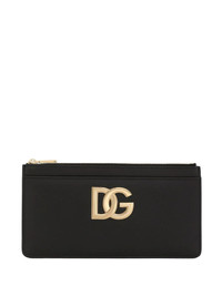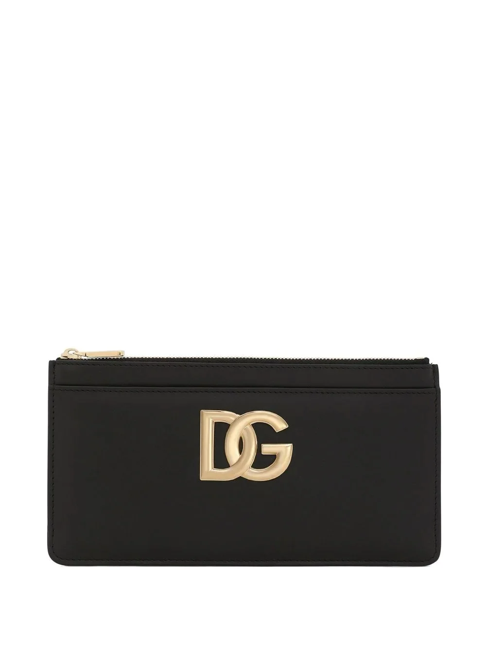 DG-logo leather card holder Highlights - Black - Calf leather - Gold-tone hardware - Logo plaque - Top zip fastening - Front pouch pocket - Card slots Made in Italy Composition Outer: Calf Leather 100% Lining: Viscose 100%