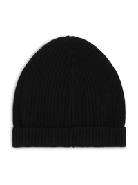 logo-plaque ribbed beanie Highlights - Jet black - Wool-cashmere blend - Knitted construction - Ribbed knit - Silver-tone logo plaque - Oval crown - Turn-up brim - Pull-on style Made in Italy Composition Wool 90%, Cashmere 10%