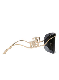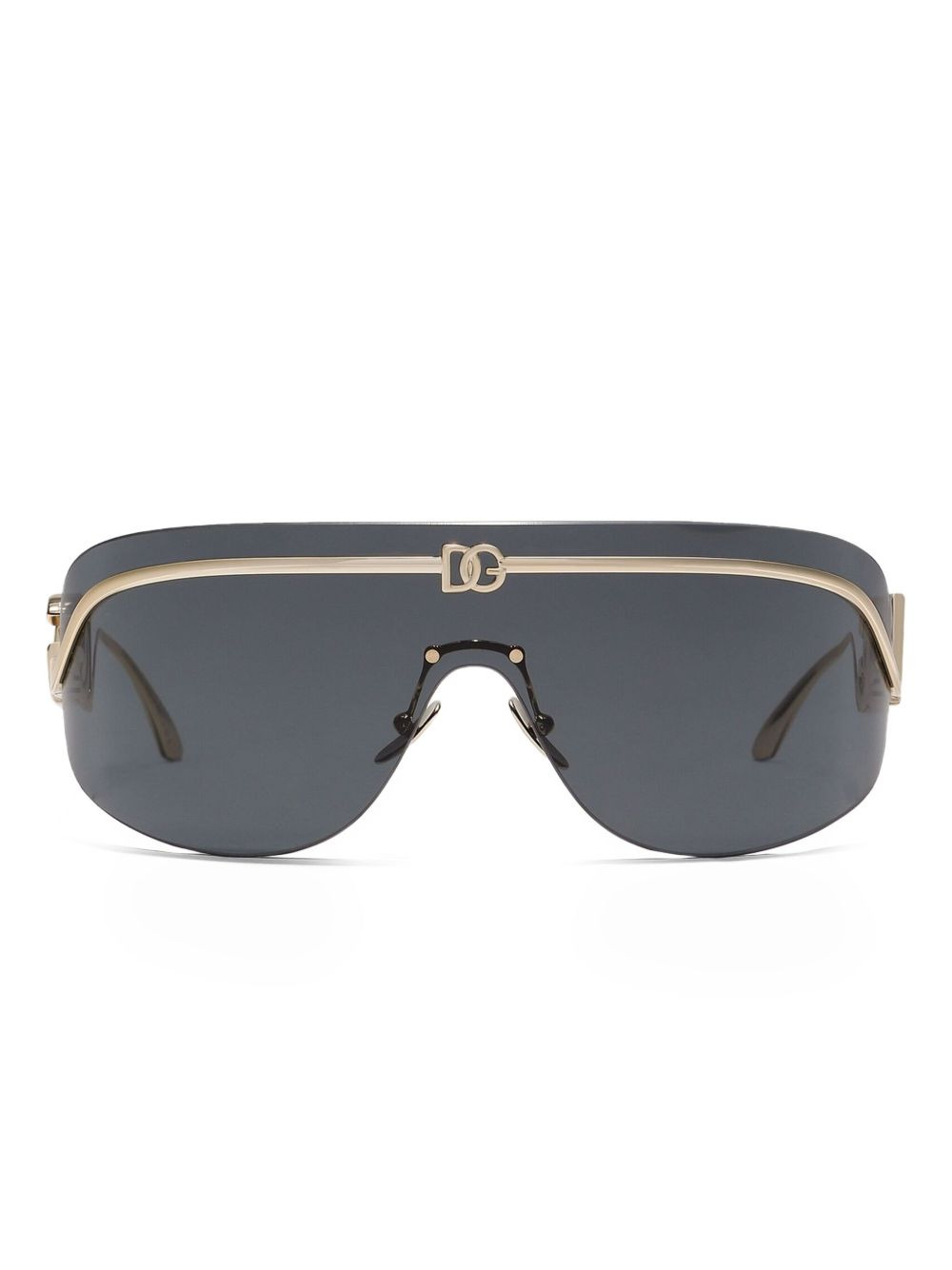 logo-plaque shield-frame sunglasses Highlights - Black - Shield frame - Gold-tone logo plaque - Logo-embellished arms - Dark grey lenses - These glasses come with a protective case. Made in Italy Composition Metal 100% SIZE & FIT Measurement Arm Length 4.52 in(11.5 cm) Bridge Width 1.57 in(4 cm) Lens Diameter 2.95 in(7.5 cm)