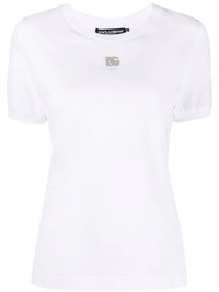 logo-plaque short-sleeve T-shirt Inspired by the late '90s and early '00s, Dolce & Gabbana pairs minimalism with contemporary detailing throughout their SS22 collection. This short-sleeve T-shirt features a logo plaque at the front constructed from silver-tone hardware, which also adds an opulent edge to the design. Made In Italy Composition Cotton 100%, Brass 90%, Crystal 10% SIZE & FIT Model measurements Height 5 ft 10 in(1.77 m) Bust/Chest 29.92 in(76 cm) Hips 34.25 in(87 cm) Waist 23.62 in(60 cm) FittingInformation This piece fits true to size. We recommend you get your regular size Cut for a slim fit Made with a mid-weight fabric Washing instructions Machine Wash