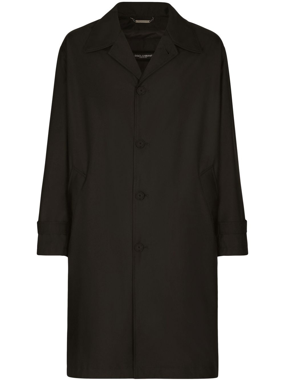 logo-tag single-breasted trench coat Presented in a timeless single-breasted design, this trench coat from Dolce & Gabbana is rendered in a classic black colourway contributing to its traditional look. Highlights - Black - Logo plaque - Notched lapels - Front button fastening - Long sleeves - Belted cuffs - Slip pockets to the sides Made in Italy Composition Lining: Nylon 99%, Polyurethane 1% Outer: Polyester 100% SIZE & FIT Measurement CHEST 53.54 in(136 cm) SLEEVE LENGTH 24.4 in(62 cm) LENGTH 44.09 in(112 cm) WAIST 53.54 in(136 cm) Washing instructions Read Manufacturer Guidelines