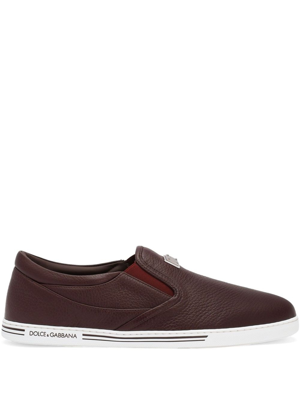 logo-plaque slip-on sneakers Highlights - Burgundy - Elasticated side panels - Flat sole - Branded insole Made in Italy Composition Lining: Lambskin 88%, Goat Skin 12% Outer: Deerskin 100% Sole: Rubber 100%