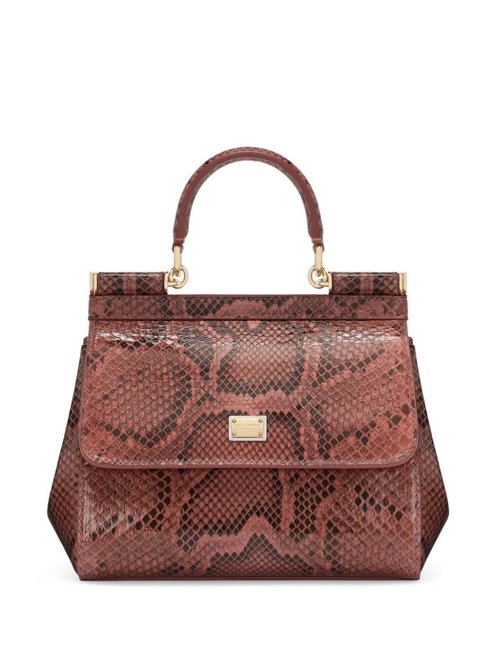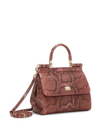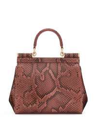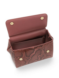 Sicily snakeskin-effect top-handle bag Highlights - Dark pink - Snakeskin effect - Single rolled top handle - Adjustable detachable shoulder strap - Front flap closure - Logo plaque - Main compartment - Internal slip pocket Made in Italy Composition Lining: Cotton 85%, Lambskin 15% Outer: Rayon 65%, Ayers Snakeskin 35% SIZE & FIT Measurement STRAP 44.09 in(112 cm) DEPTH 3.93 in(10 cm) HANDLE 3.54 in(9 cm) WIDTH 7.87 in(20 cm) HEIGHT 7.08 in(18 cm)
