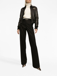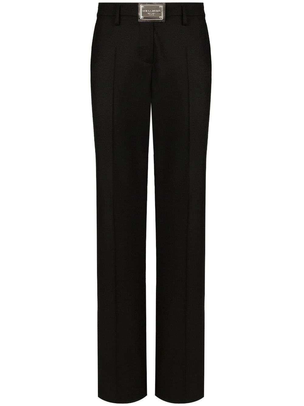 logo-plaque straight-leg trousers Highlights - Black - Virgin wool - Silver-tone logo plaque - Pressed crease - Belt loops - Button fly fastening - Mid-rise - Straight leg - Two diagonal pockets to the sides - Rear welt pocket - Straight hem Made in Italy Composition Virgin Wool 100% Washing instructions Read Manufacturer Guidelines