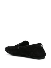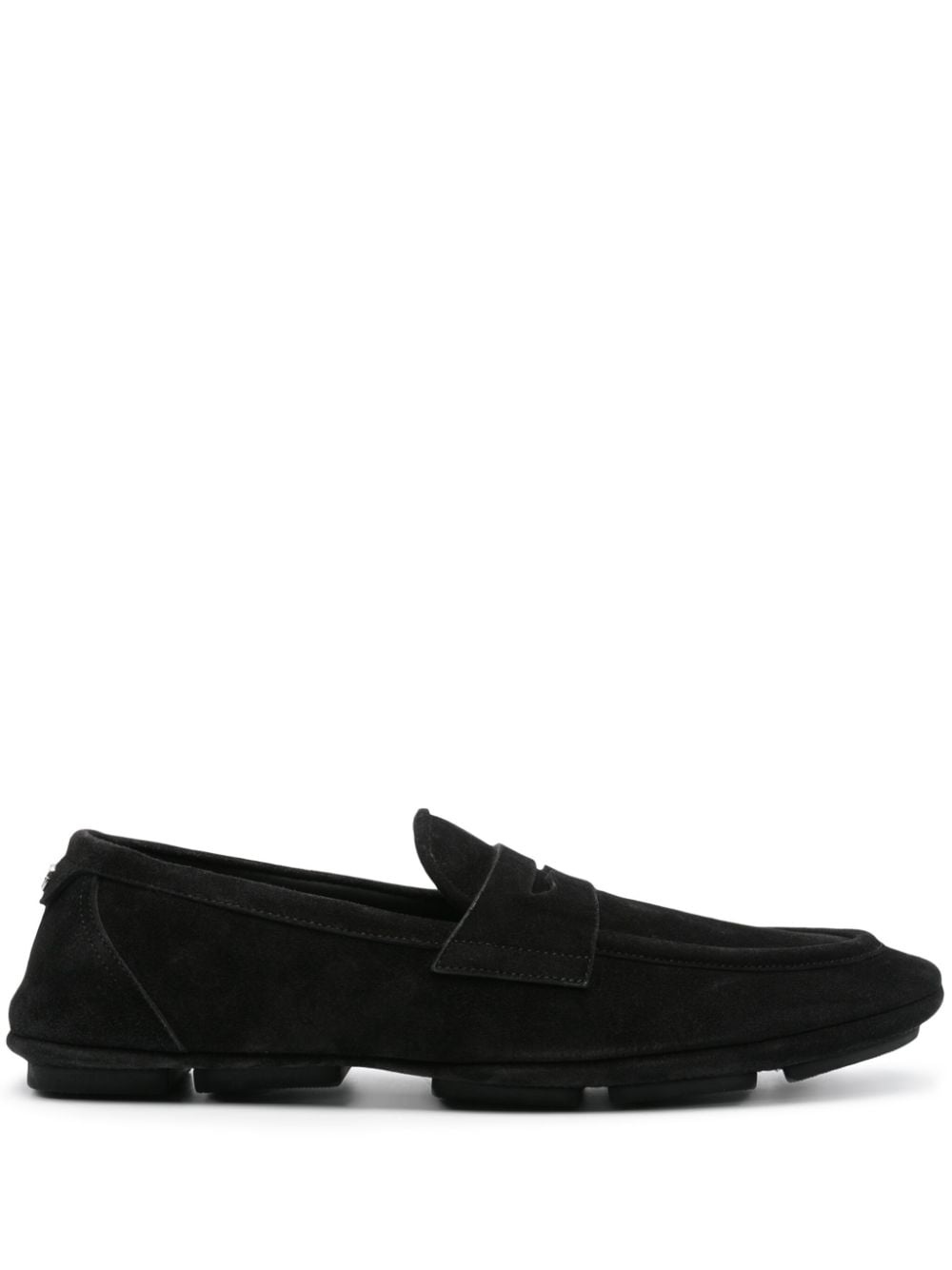 logo-plaque suede loafers These loafers are made from smooth black suede and are characterised by their classic almond-toe profile. It features a silver-tone logo on the heel cap for a recognisable touch. Highlights - Black - Calf suede - Silver-tone logo plaque to the rear - Penny slot - Round toe - Branded leather insole - Segmented rubber sole - Slip-on style - This piece comes complete with a protective dust bag. Made in Italy Composition Lining: Calf Leather 100% Sole: Rubber 100% Outer: Calf Suede 100% SIZE & FIT FittingInformation Customer returns indicate this item fits small. Measurement HEEL 0.59 in(1.5 cm)