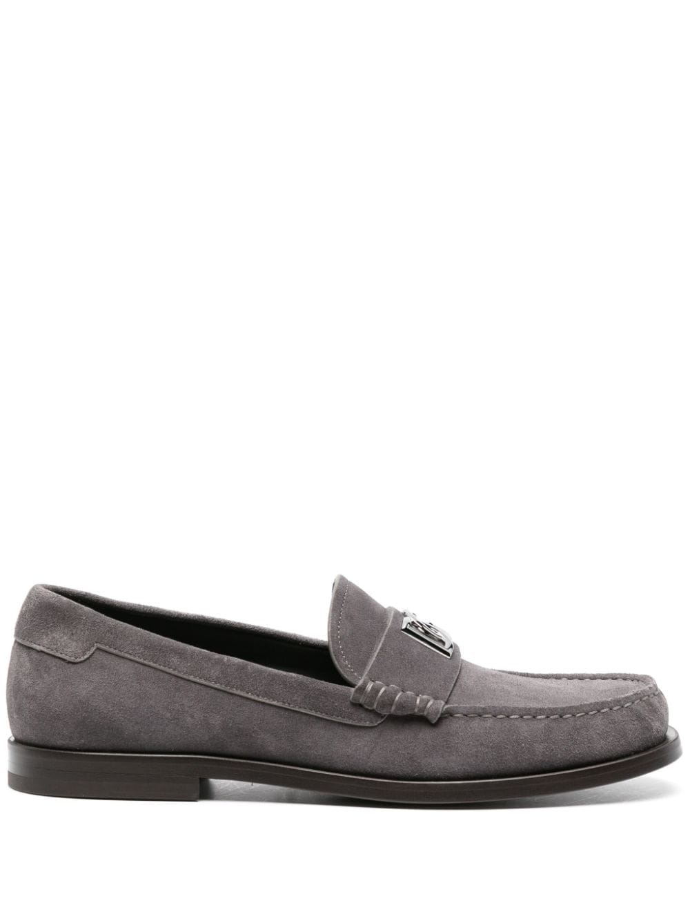 logo-plaque suede loafers Highlights - Grey - Suede - Silver-tone logo plaque - Moc stitching - Square toe - Branded leather insole - Low stacked heel - Leather outsole - Slip-on style - This piece comes complete with a protective dust bag. Made in Italy Composition Sole: Rubber 100%, Calf Leather 100% Outer: Calf Suede 100% Lining: Calf Leather 100% SIZE & FIT Measurement HEEL 0.78 in(2 cm) Sole height 0.39 in(1 cm)
