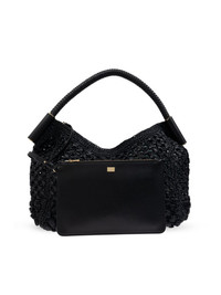logo-plaque tote bag Highlights - Black - Interwoven design - Gold-tone logo plaque - Gold-tone hardware - Clasp fastening - Single braided top handle - Main compartment - Removable pouch Made in Italy Composition Outer: Rayon 100%, Leather 100% SIZE & FIT Measurement HEIGHT 12.59 in(32 cm) WIDTH 14.96 in(38 cm)