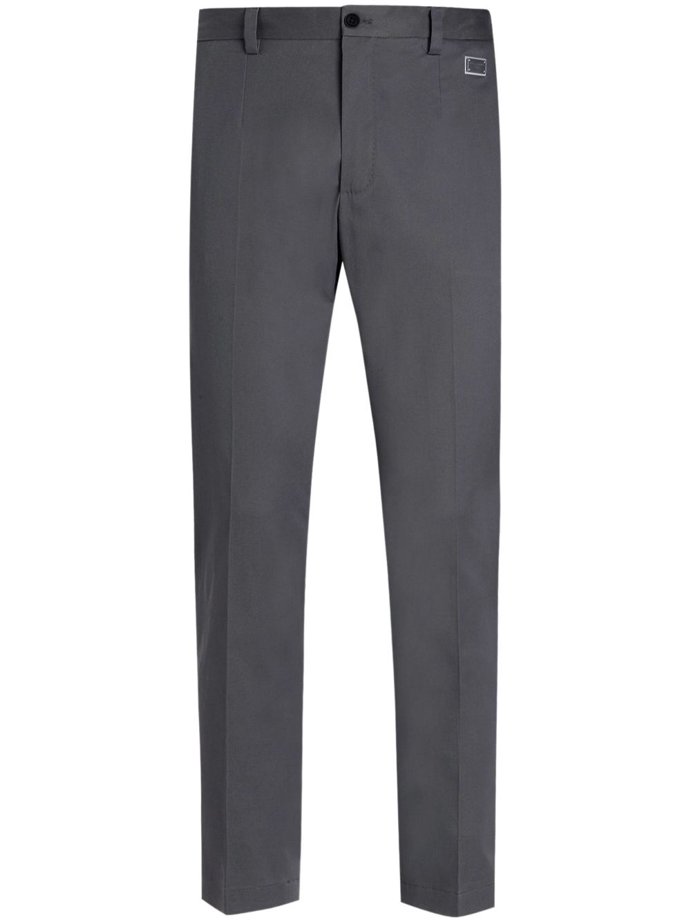 logo-plaque trousers Highlights - Medium grey - Concealed front fastening - Belt loops - Two side slit pockets - Two rear button-fastening jetted pockets Made in Italy Composition Outer: Cotton 92%, Spandex/Elastane 2%
