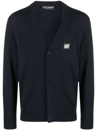 logo-plaque virgin wool-blend cardigan A departure from Dolce & Gabbana's penchant for maximalist decoration, this cardigan is simply detailed with a logo plaque at the chest. The gleaming hardware pops against the navy virgin wool-cashmere blend construction. Highlights - Navy blue - Virgin wool-cashmere blend - Logo plaque - Ribbed trim - Front button fastening Made in Italy Composition Virgin Wool 90%, Cashmere 10% SIZE & FIT Model measurements Height 6 ft 2 in(1.87 m) Bust/Chest 35.82 in(91 cm) Hips 35.43 in(90 cm) Waist 27.95 in(71 cm) FittingInformation Designed for a relaxed fit, this piece allows for comfort and movement when worn Made from a midweight non-stretch fabric, this piece offers minimal elasticity when worn This piece fits true to size – take your usual size