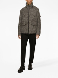 logo-plaque wool jacket Crafted from wool, this high-neck jacket by Dolce & Gabanna is delivered in a timeless grey hue and features a logo plaque at the arm for a subtle branded touch. Highlights - Grey - Wool blend - Stand-up collar - Front zip fastening - Logo plaque at the arm - Sleeve flap pocket - Long sleeves - Two front flap pockets - Straight hem Made In Italy Composition Outer: Wool 90%, Nylon 10% Lining: Nylon 100% Washing instructions Read Manufacturer Guidelines