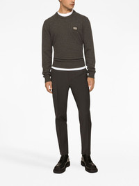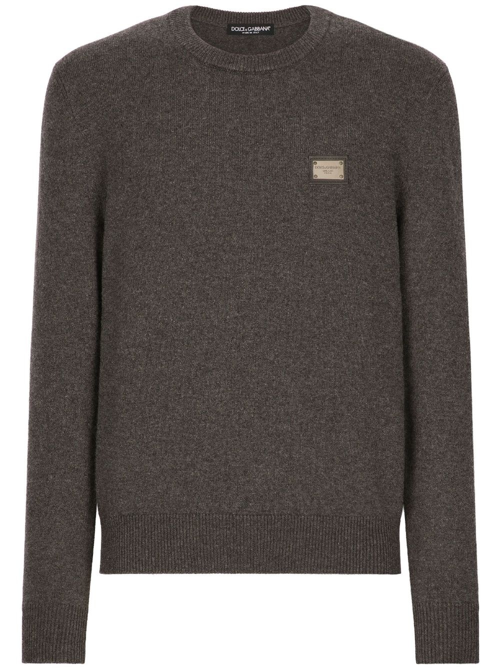 logo-tag wool-cashmere jumper Crafted in Italy from a soft virgin-wool and cashmere blend, this understated jumper by the Italian fashion house Dolce & Gabanna is characterised by its logo-plaque on the chest for a subtle branded touch. Highlights - Dark grey - Virgin wool-cashmere blend - Knitted construction - Crew neck - Long sleeves - Ribbed cuffs and hem - Straight hem Made in Italy Composition Virgin Wool 90%, Cashmere 10% SIZE & FIT FittingInformation Designed for a relaxed fit, this piece allows for comfort and movement when worn Made from a midweight non-stretch fabric, this piece offers minimal elasticity when worn This piece fits true to size – take your usual size