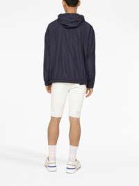 logo-plaque zip-fastening jacket Dolce & Gabbana pairs the brand's signature opulence with functionality on this hooded jacket. This is seen through the silver-tone hardware logo plaque at the chest alongside the use of technical materials. Highlights - Blue - Logo plaque - Classic hood - Long sleeves - Front zip fastening Made in Italy Composition Polyester 100%