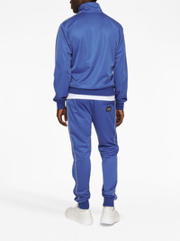 logo-plaque zip-up jacket Highlights - Blue - Silver-tone logo plaque - Stripe detailing - High neck - Front zip fastening - Long sleeves - Ribbed cuffs and hem Made in Italy Composition Triacetate 100%