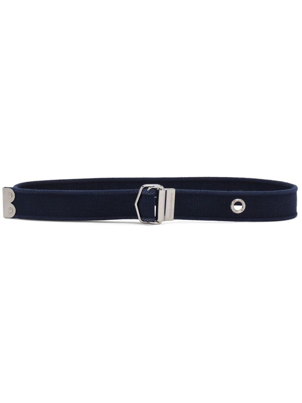 logo-print buckled belt Highlights - Blue/white - Logo print to the front - Buckle fastening - Eyelet detailing - Adjustable fit Made in Italy Composition Polyester 100%