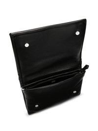 logo-print clutch bag Highlights - Black - Lambskin - Leather - Silver-tone logo lettering - Foldover top with magnetic fastening - Adjustable detachable shoulder strap - Internal zipped compartment - Internal logo plaque - Main compartment Made in Italy Composition Outer: Lambskin 90%, CALFSKIN 10%
