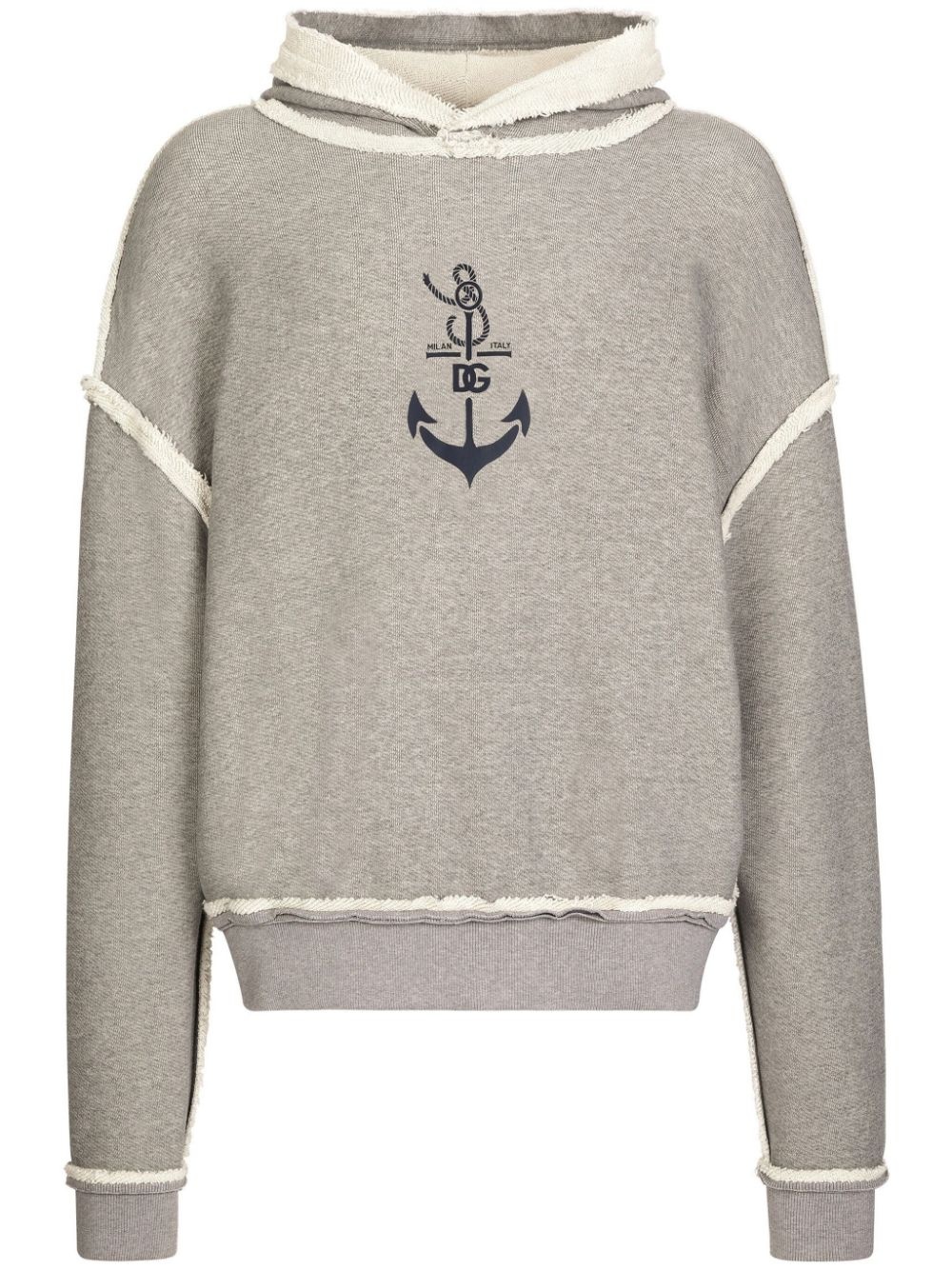 logo-print contrasting-trim hoodie Highlights - Grey/white/navy blue - Cotton blend - Jersey texture - Contrasting trim - Logo print to the front - Slouchy hood - Drop shoulder - Long sleeves - Ribbed cuffs and hem - Straight hem Made in Italy Composition Cotton 83%, Polyamide 14%, Cashmere 3% Washing instructions Read Manufacturer Guidelines