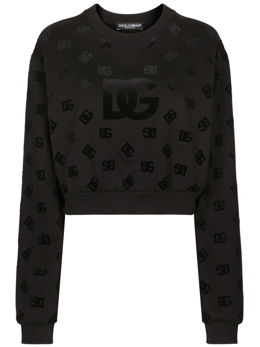 logo-print cotton sweatshirt Highlights - Black - Cotton - All-over logo print - Crew neck - Long sleeves - Straight hem - Cropped Made in Italy Composition Cotton 100% Washing instructions Read Manufacturer Guidelines