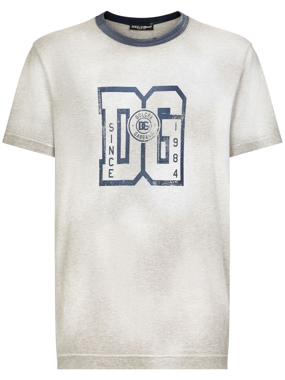 logo-print crew-neck T-shirt grey/navy blue cotton logo print to the front crew neck short sleeves straight hem Made in Italy Composition Cotton 100% Washing instructions Machine Wash