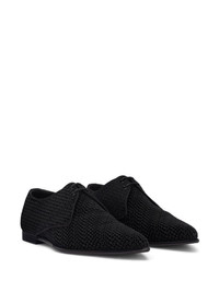 logo-print velvet derby shoes Highlights - Black - Calf leather - All-over logo print - Front lace-up fastening - Pointed toe - Flat sole - Branded insole Made in Italy Composition Lining: Calf Leather 40%, Rayon 34%, Silk 16%, Goat Skin 10% Sole: Calf Leather 100% Outer: Polyurethane 40%, Cotton 30%, Rayon 30%