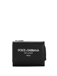 logo-print flap wallet Dolce & Gabbana lays claim to this classic black leather wallet through the bold logo print applied to the front of the design. Highlights - Black/white - Calf leather - Logo print to the front - All-around zip fastening - Coin pocket - Foldover top with press-stud fastening - Internal card slots Made in Italy Composition Outer: Calf Leather 100% Inner: Calf Leather 90%, Rayon 10%