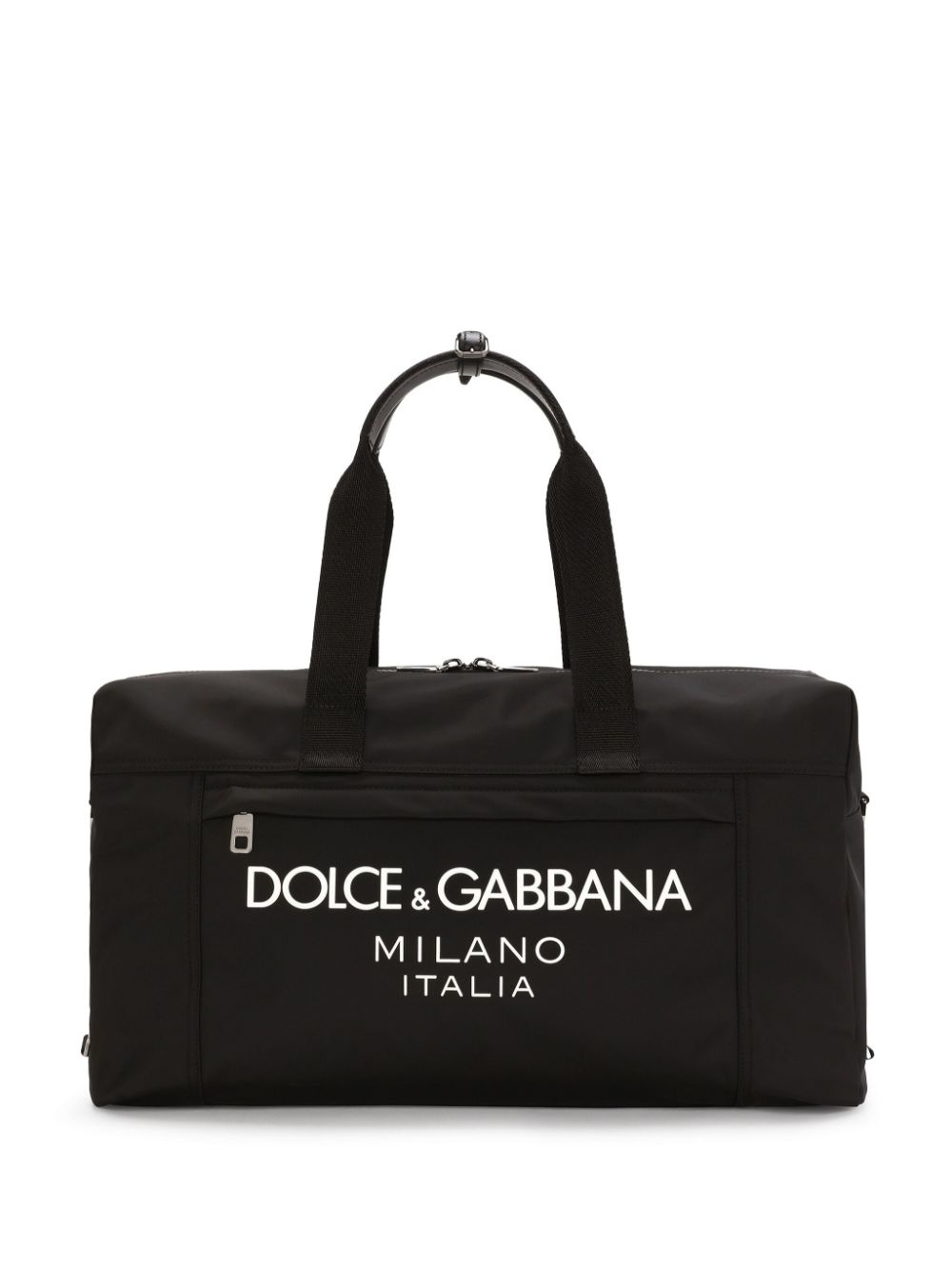 logo-print holdall Highlights - Black - Leather trim - Logo print to the front - Top zip fastening - Two long top handles - Adjustable detachable shoulder strap - Front zip-fastening pocket - Internal logo patch - Internal zip-fastening pocket - Main compartment Made in Italy Composition Outer: Polyamide 50%, Acrylic 20%, Viscose 15%, CALFSKIN 15% Lining: Polyamide 85%, CALFSKIN 15%