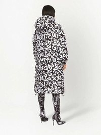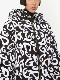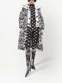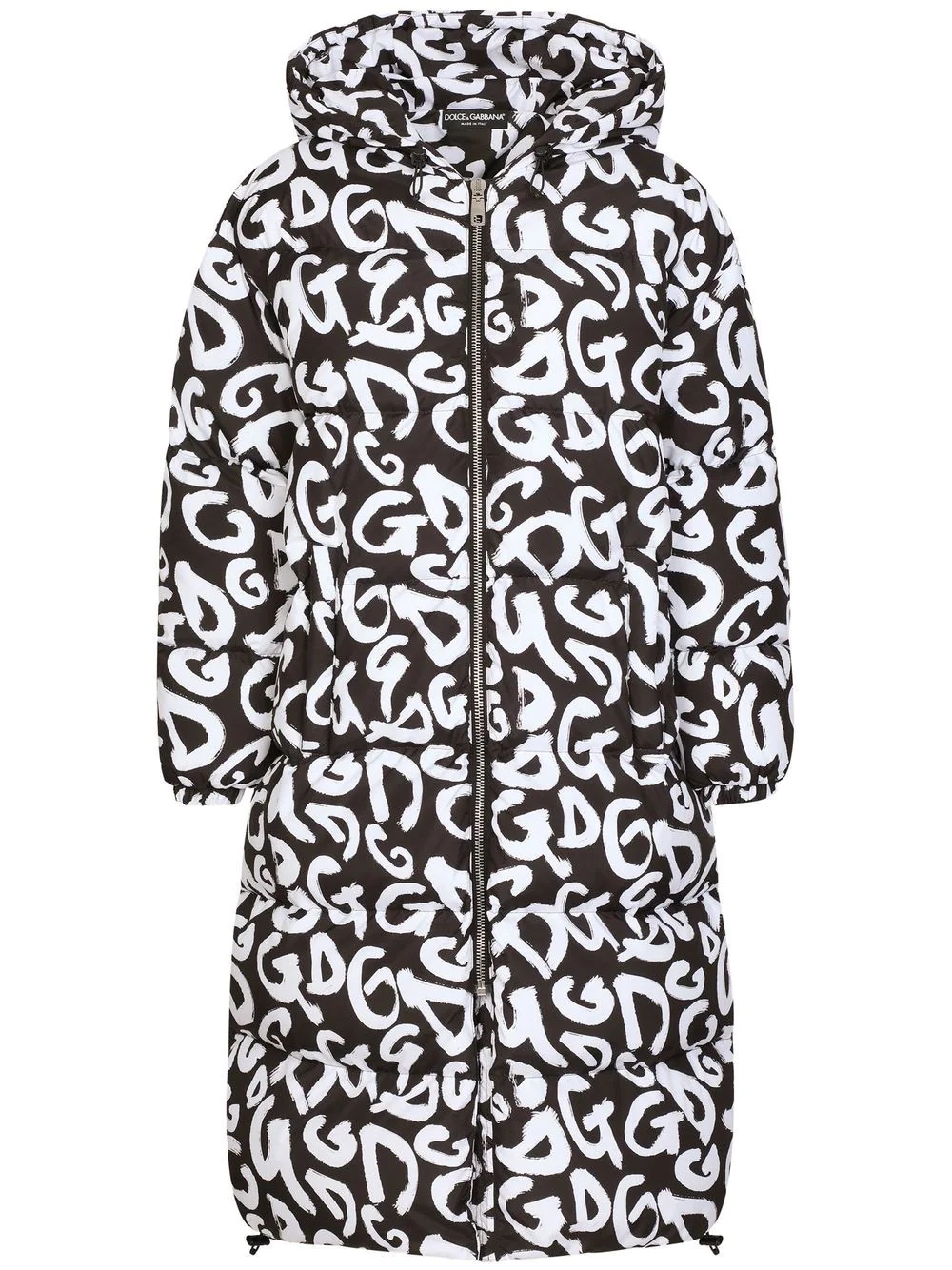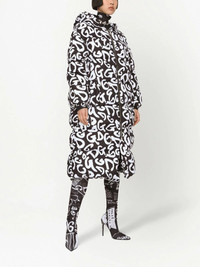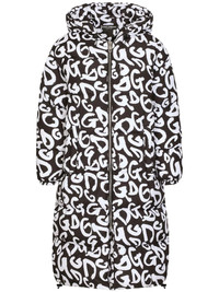 logo-print hooded zip-up coat black/white all-over logo print padded design classic hood front zip fastening long sleeves below-knee length Made in Italy Composition Outer: Polyester 100% Lining: Polyester 100%