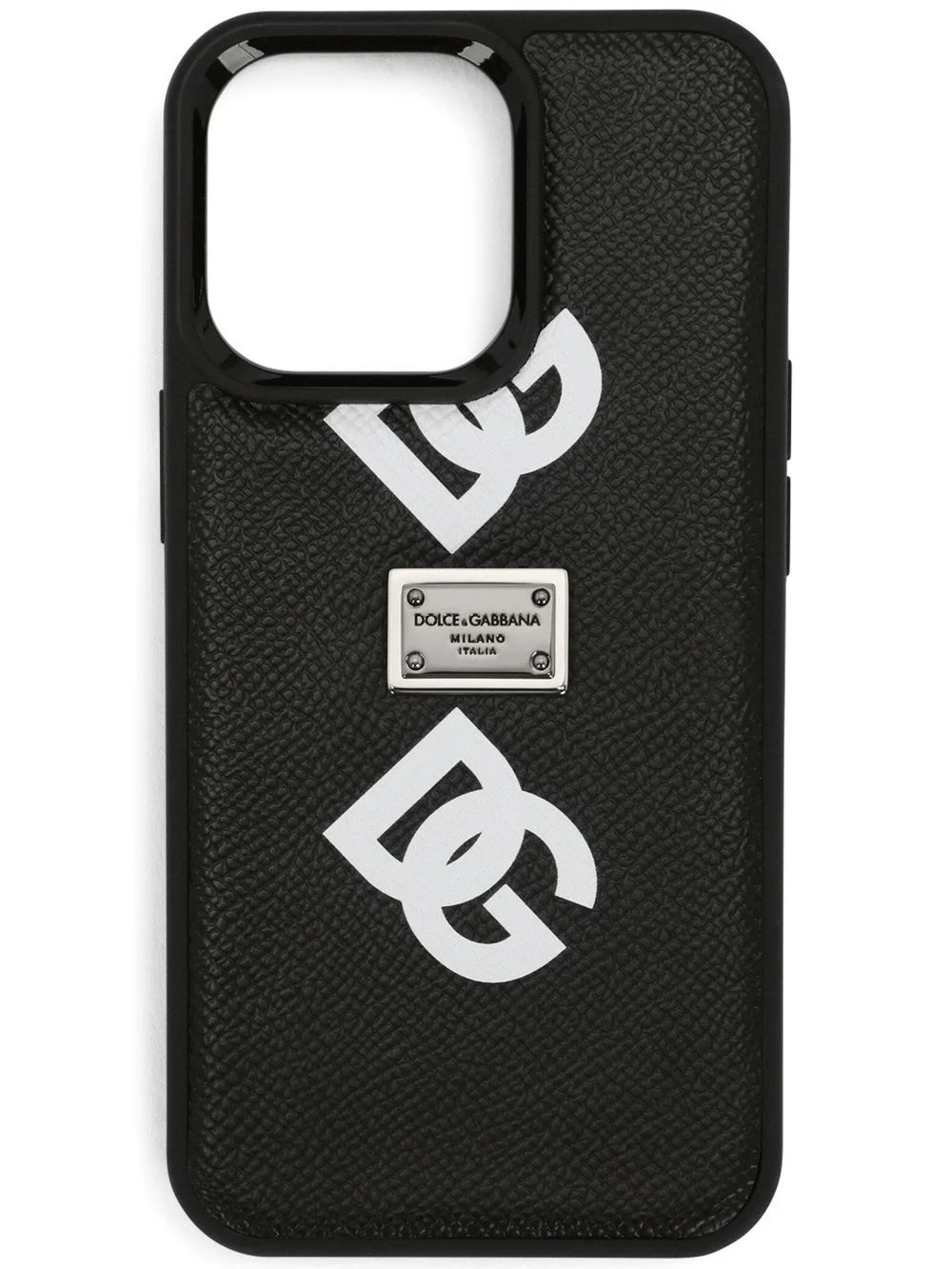Calfskin iPhone 13 Pro Max cover with all-over DG print
