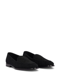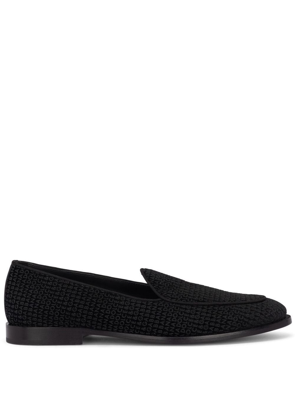 classic velvet slippers Highlights - Black - Calf leather - All-over logo print - Slip-on style - Almond toe - Flat sole - Branded insole Made in Italy Composition Lining: Calf Leather 90%, Goat Skin 10% Sole: Calf Leather 100% Outer: Cotton 50%, Polyurethane 50%