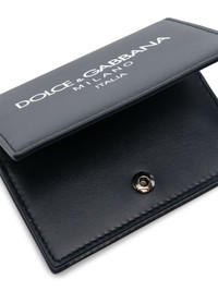 logo-print leather wallet Highlights - Black - Calf leather - Logo print to the front - Press-stud fastening - Bi-fold design Made in Italy Composition Outer: Calf Leather 100% SIZE & FIT Measurement DEPTH 0.78 in(2 cm) LENGTH 3.14 in(8 cm) WIDTH 4.33 in(11 cm)
