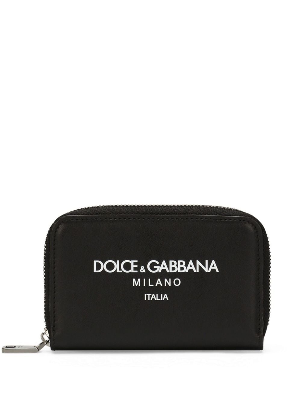 logo-print leather wallet Highlights - Black - Calf leather - Silver-tone hardware - Logo print to the front - All-around zip fastening - Internal card slots Made in Italy Composition Lining: Calf Leather 90%, Viscose 10% Outer: Calf Leather 100%