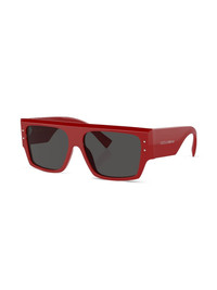 logo-print rectangle-frame sunglasses Dolce & Gabbana is known for presenting designs with bold detailing. These sunglasses are a fine example, arriving with chunky rectangle frames and the brand's logo printed across the temples. Highlights - Red - Acetate - Rectangle frame - Tinted lenses - Logo print at the arm - Oversize arms - Curved tips - These glasses come with a protective case. Made in Italy Composition Acetate 100%