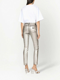 flocked-logo cotton T-shirt Dolce & Gabbana takes a refined approach to casualwear. Showcased on this short-sleeve top from the AW22 collection, the garment features contemporary logo detailing across the front in a contrasting colourway. Highlights - White - Cotton - Logo print to the front - Round neck - Short sleeves - Straight hem Made in Italy Composition Cotton 100%