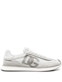 Logo-Print Mesh, Leather and Suede Sneakers White